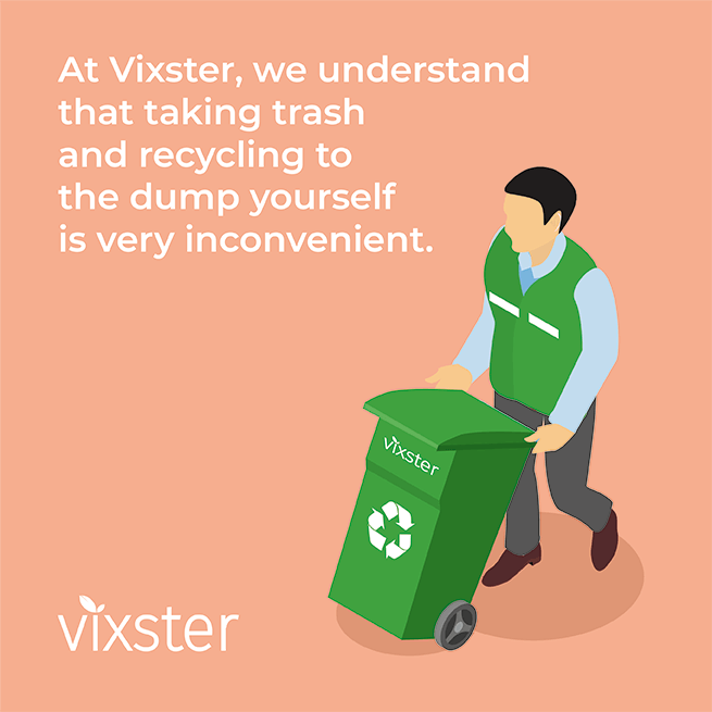 Vixster provides trash AND recycling collection services to rural America, and you don't even have to roll your bin out to the street!